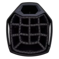 - A cart strap pass-through runs behind the long pockets so the bag can be secured on a cart without compromising pocket access.